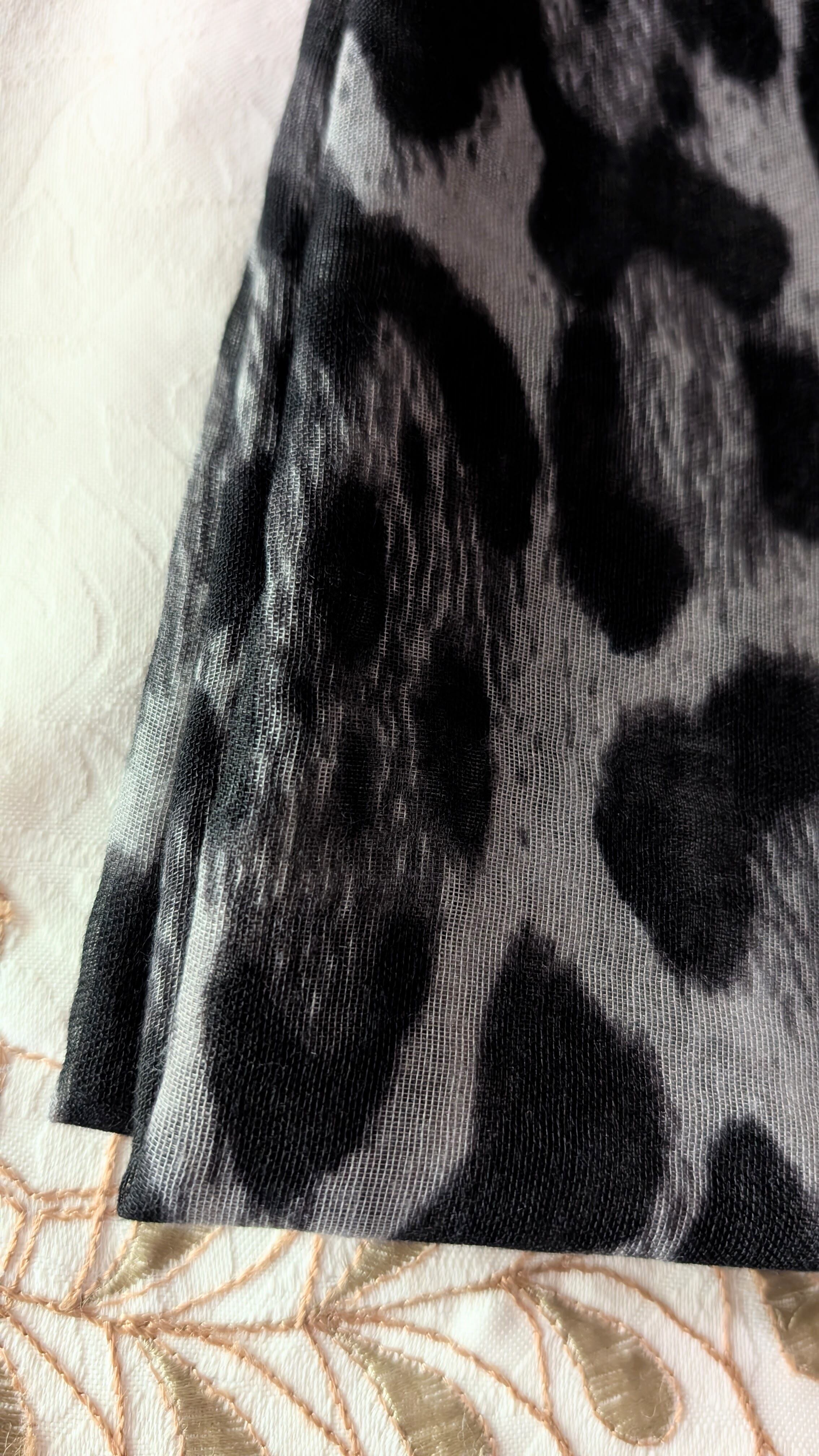 シースルー生地に豹柄入り、薄くて、綺麗なストールです。ずっと巻いていたくなるとろみ感のある、とっても優しい肌触りで、身にまとうと適度なボリュームが出て華やかです。優雅に羽織ったり、巻いたり、シーンに合わせ楽しめる逸品♪また母の日や誕生日プレゼント、クリスマスプレゼントにも是非♪