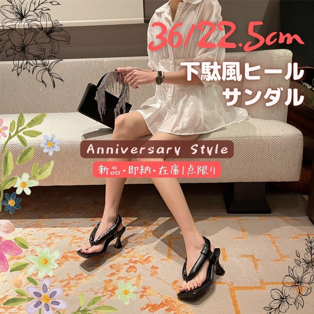 サンダル 黒36即納 レディース 鼻緒 下駄風 ヒール トング ビーチ スクエアトゥ 2418656 夏 サマー