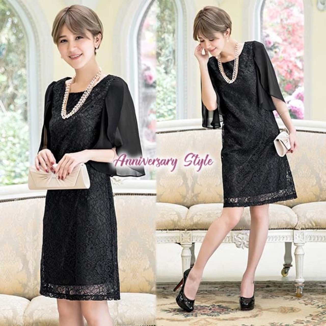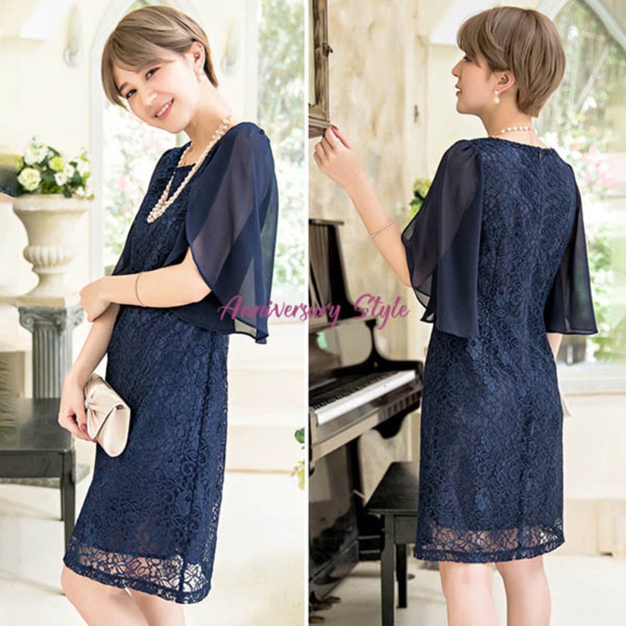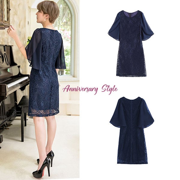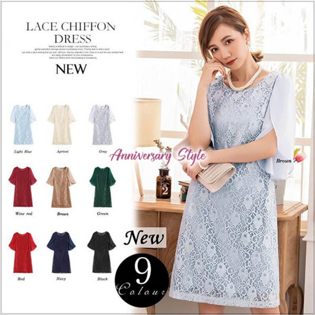 パーティードレス S-3L 12色 大人可愛い 上品 シフォン レース 切替 ワンピース ネイビー YJ-880996 膝丈 ミニ レディース 結婚式 二次会 デートコーデ