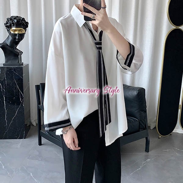 メンズレディース男女兼用ユニセックス的な魅力のネクタイ付ワイシャツ。